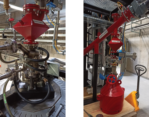 TAF verfügt über das notwendige Know-how, um solche Schleusensysteme mit Drücken bis zu 40 bar auszulegen, zu bauen und in Betrieb zu nehmen. Schüttgüter können über einen dosierenden Schneckenförderer dem Prozess zugeführt werden.
